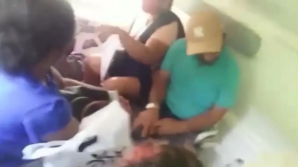 As imagens gravadas na ambulância mostram os pacientes dividindo um espaço apertado na parte da traseira do veículo. Alguns deles estão sentados na maca, já outros ficam no espaço improvisado normalmente usado para o profissional de saúde.