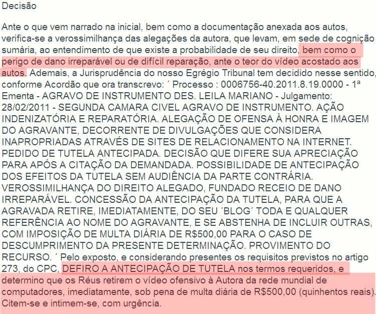 Para alguns nobres a justiça funciona bem e muito rápida, a Deputada Cidinha Campos (PDT) entrou com o processo contra mim no dia 18/05/2011 (sexta-feira), e já no dia 21/05/2012 (segunda-feira) o juiz já tinha decidido favoravelmente a ela mandando CENSURAR o vídeo que eu fiz dando um esporro me defendendo na parlamentar por causa das mentiras, ofensas, e humilhações que ela fez contra a minha pessoa, conforme comprovado acima.