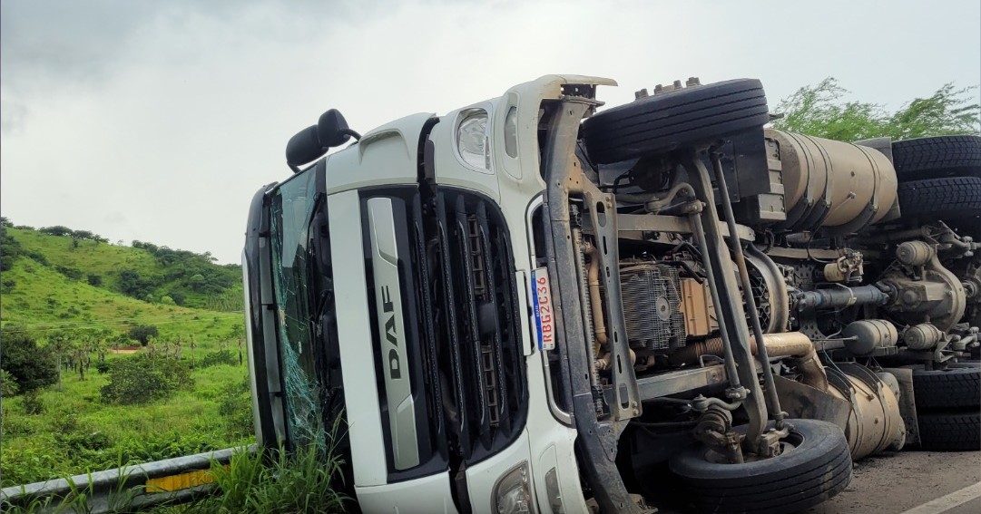 Uma carreta tombou na manhã deste sábado, no Km 126, da BR-222, nas proximidades do Conjunto Cajazeira, em Itapajé, no interior do Ceará.