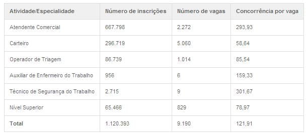 Confira na tabela abaixo os cargos que mais tem concorrência.