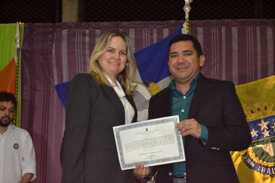 Os futuros gestores que assumem a partir do dia 01 de janeiro de 2017 receberam da juíza eleitoral Dra. Juliana Porto Sales o diploma que os consagra eleitos e lhes dão autoridade para serem empoçados. O evento também diplomou vereadores e três suplentes de cada coligação que elegeu vereador. O promotor eleitoral Dr. Rodrigo Manso também participou da solenidade, juntamente com o Chefe do Cartório Eleitoral Marcio Lopes e a equipe do cartório da 41ª zona eleitoral. Familiares dos eleitos e apoiadores também estiveram presentes no evento