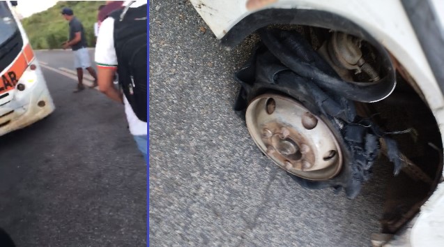 Um ônibus escolar que transporta estudantes da EEEP Alan Pinho Tabosa de General Sampaio para Pentecoste, quebrou na tarde de terça-feira (7), em um trecho da rodovia estadual que interliga os dois municípios. Vários estudantes do ensino médio ficaram por horas aguardando ajuda no acostamento da via. A reclamação foi feita pelos próprios estudantes, que cobram melhoria no transporte escolar. Segundo eles, não é a primeira vez que o ônibus apresenta defeitos. O veículo apresenta pneus recauchutados e falta de cintos de segurança nos assentos, em dias de chuva, goteiras no teto e até combustível já cegou a faltar. Muitos relatam que já estão cansados de perder aula por conta dessa problemática.
