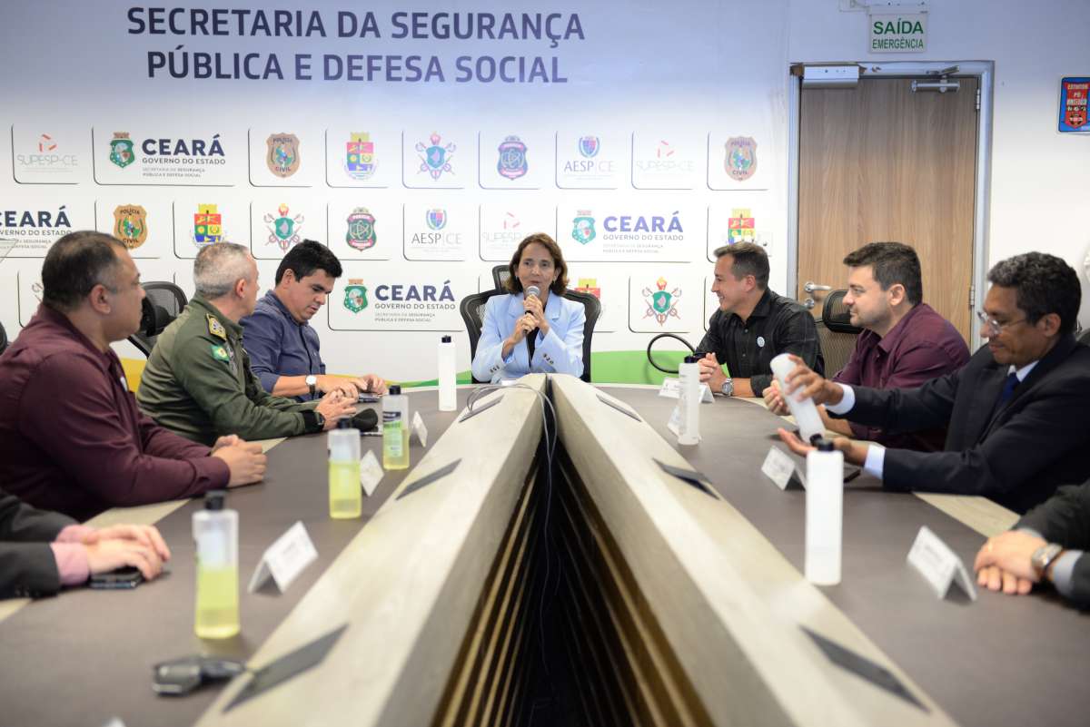 O anúncio foi realizado na sede da Secretaria da Segurança Pública e Defesa Social do Estado do Ceará (SSPDS), com a presença do secretário-chefe da Casa Civil, Chagas Vieira; do secretário da SSPDS, Sandro Caron; do secretário executivo da pasta, Samuel Elânio; do coronel comandante-geral da Polícia Militar do Ceará (PMCE), Márcio Oliveira; do coronel comandante-geral do Corpo de Bombeiros Militar do Estado, Ronaldo Roque; o perito geral adjunto da Perícia Forense do Estado do Ceará (Pefoce), Átila de Oliveira; o diretor de Planejamento e Gestão Interna da Academia Estadual de Segurança Pública (Aesp), Nartan Andrade; e a gerente da Gerência Administrativo Financeira da Superintendência de Pesquisa e Estratégia de Segurança Pública (Supesp), Sheiliane Luz.