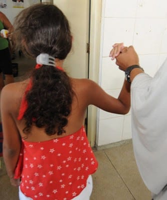 Ele ainda tentou correr mas acabou agarrado por populares e agredido. Em seguida, foi preso. O suspeito e a menina foram levados para a DCAV