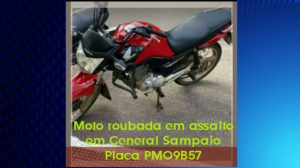 Uma motocicleta Honda CG 160 de cor vermelha e placa PMO9B57, foi tomada de assalta na noite desta quinta-feira (19) no município de General Sampaio, no interior do Ceará.