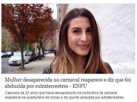 A história da moça que teria inventado uma abdução para trair o marido no carnaval é falsa! O boato surgiu em um site humorístico, mas que muita gente acreditou