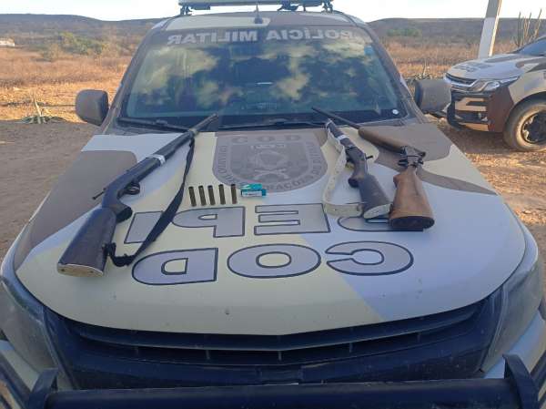 Os agentes chegaram ao paradeiro do homem após denúncias anônimas. Três espingardas, uma delas calibre 32 e duas artesanais, além de munições.