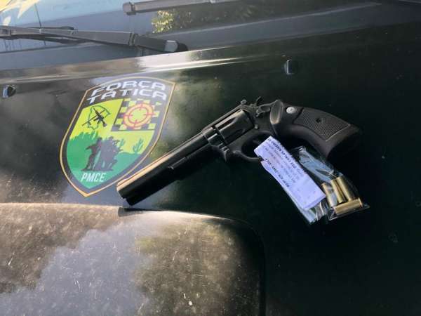 A viatura da PMCE, após informações acerca do indivíduo que havia tentado invadir uma residência no sábado (16) no bairro Planalto e ainda efetuado disparos de arma de fogo no local, compareceu até a casa do suspeito.