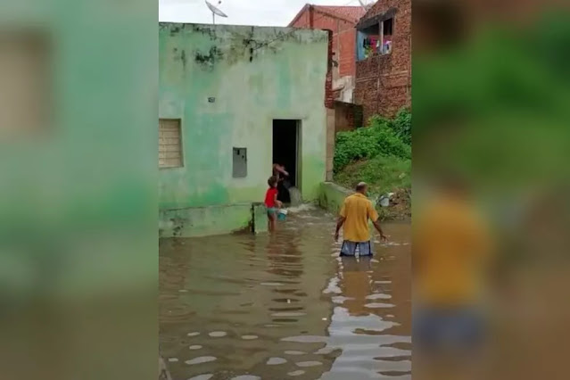 Por conta da precipitação, ruas e casas do município ficaram alagadas. Imagens enviadas por populares mostram moradores da região usando baldes para retirar a água que invadiu casas e comércios.