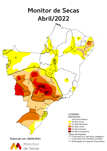 O mais recente mapa do Monitor de Secas, referente ao mês de abril, indica que o Ceará apresenta 81,13% do seu território sem seca relativa.